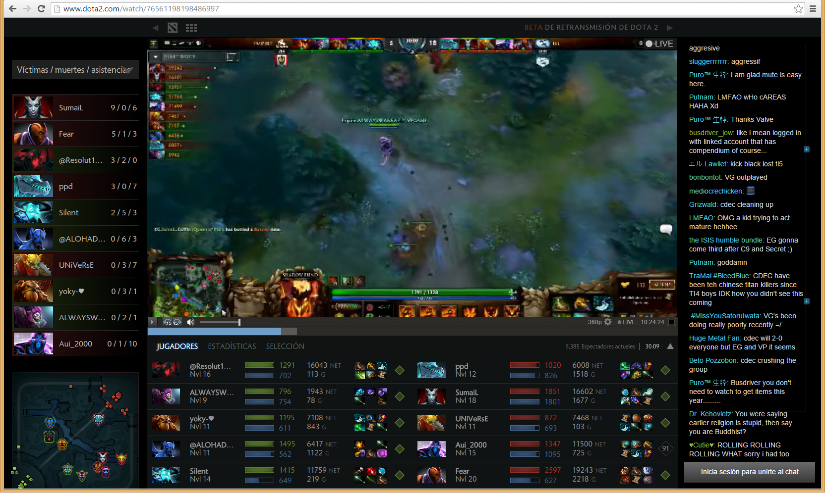 Mi opción preferida siempre ha sido ver desde el juego de DotA 2 para poder repetir las jugadas que me parecen más importantes, pero si no tienes el tiempo suficiente para seguir de esta manera el torneo, en la cuenta de youtube de Dotacinema encontrarás videos de jugadas importantes o impresionantes que se dieron durante el día, y en la cuenta de Dota 2 HighLights Daily se puede ver cada partida de manera resumida.